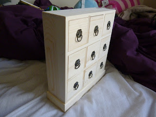 So here we have: a handy little set of pretty wooden storage drawers.